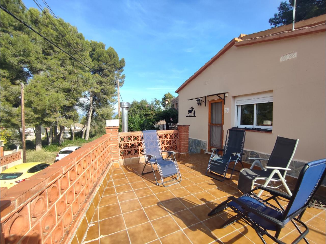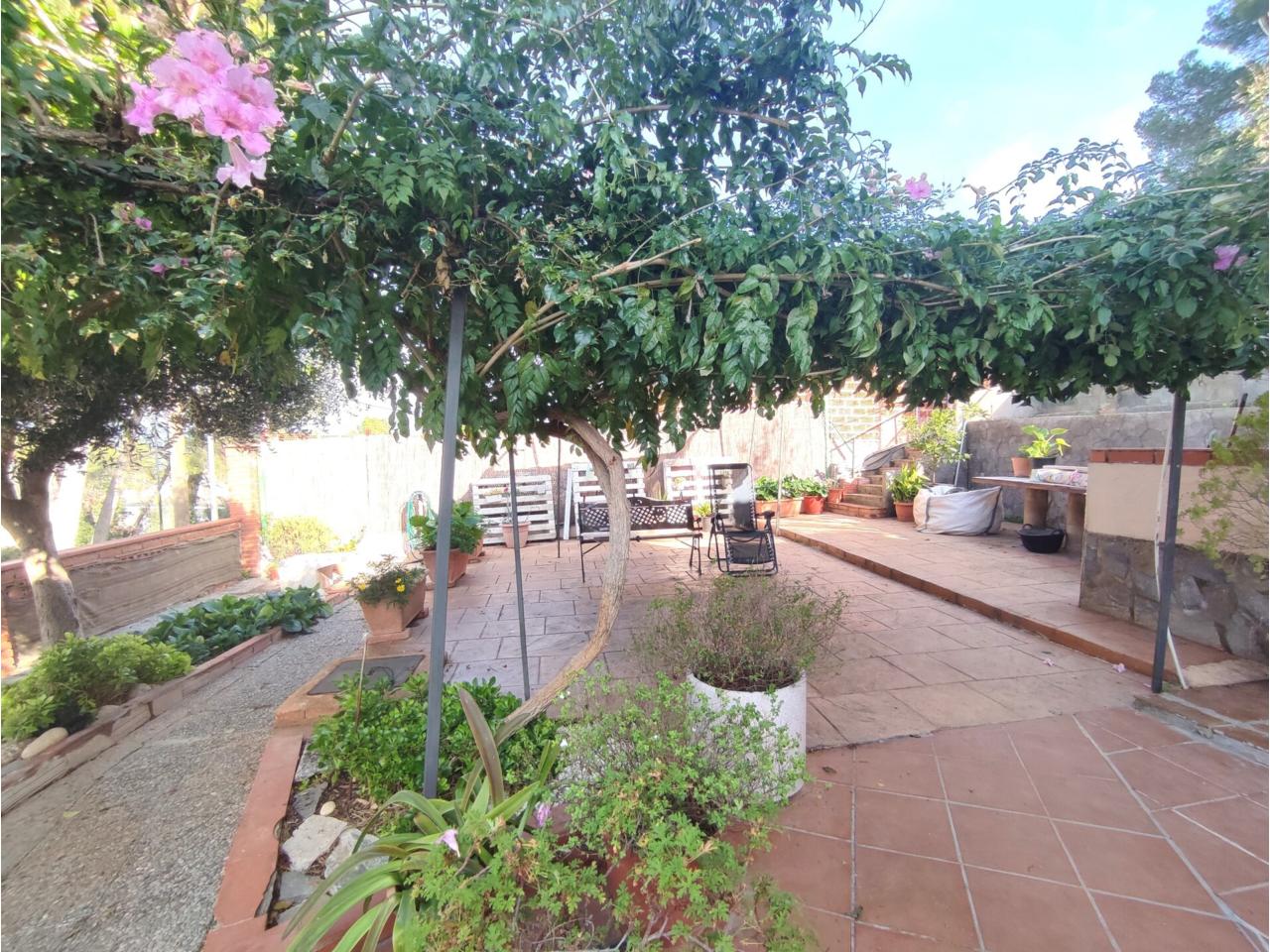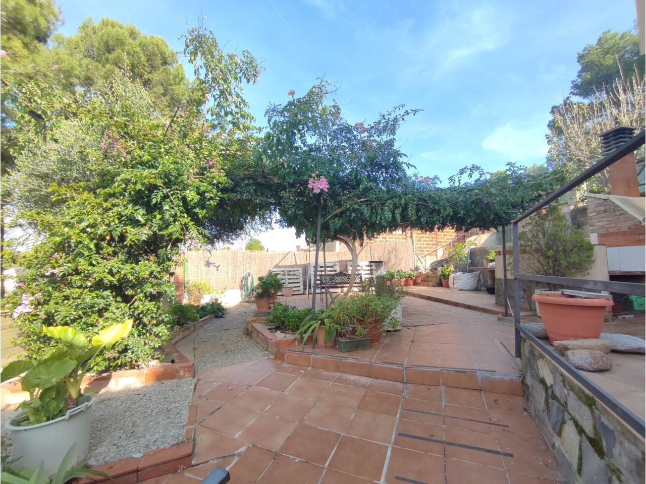 A l’exterior hi trobem una encantadora zona enjardinada amb flors i arbres, ideal per relaxar-se cada dia. També disposa d’una àrea de pícnic enrajolada amb barbacoa, perfecta per reunir-se amb família i amics, i una gran terrassa assolellada amb vistes que aporta llum i calidesa a tota la casa. A la part més elevada de la finca hi ha un espai destinat a hort, amb el seu traster per a eines, ideal per a qui vulgui cultivar o tenir un racó més natural.